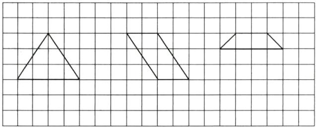 1. 图中每个小方格的面积表示 $1cm^{2}$,请在图中分别画出面积为 $6cm^{2}$ 的平行四边形、三角形和梯形各一个。(8分)
