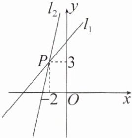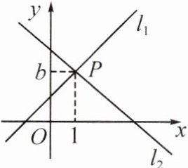 2. 如图,直线 $ l_1:y = k_1x + b_1 $ 与直线 $ l_2:y = k_2x + b_2 $ 相交于点 $ P $,则方程组 $\begin{cases}y = k_1x + b_1,\\y = k_2x + b_2\end{cases}$ 的解是(