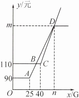 两种方案每月所需费用 y(单位:元)与每月使用流量 x(单位:G)之间的函数图象如图所示。