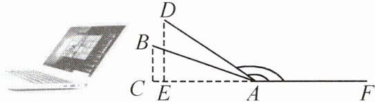 2. 某小组开展了关于笔记本电脑的张角大小的实践探究活动。如图,当张角为∠BAF时,顶部边缘B处离桌面的高度BC为10.5cm,此时底部边缘A处与C处间的距离AC为36cm,小组成员调整张角的大小继续探究,最后发现当张角为∠DAF时(点D是点B的对应点),顶部边缘D处到桌面的距离DE为22.5cm,此时底部边缘A处与E之间的距离AE为(