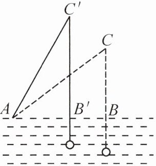 3. 如图,已知钓鱼竿AC的长为10m,露在水面上的鱼线BC的长为6m,某钓鱼者想看看鱼钩上的情况,把鱼竿AC转动到AC'的位置,此时露在水面上的鱼线B'C'的长为8m,则BB'的长为