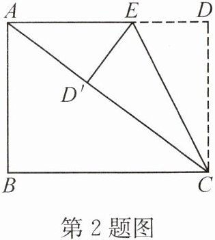 2. [2024秋·皇姑区校级月考]如图,将长方形纸片ABCD折叠,使边DC落在对角线AC上,折痕为CE,且D点落在对角线D'处。若AB=3,AD=4,则ED的长为(