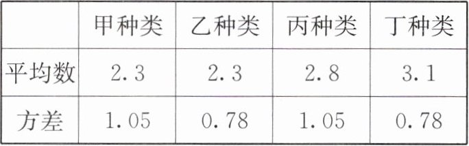 1. [2024·上海]科学家同时培育了甲、乙、丙、丁四种花,开花时间的数据整理如下表,从甲、乙、丙、丁中选个开花时间最短并且最稳定的是(