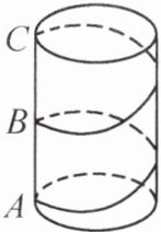 5. 有一个圆柱体礼盒,高18cm,底面周长为12cm。现准备在礼盒表面粘贴彩带作为装饰,若彩带一端粘在A处,另一端绕礼盒侧面2周后粘贴在C处(B为AC的中点),则彩带最短为 (