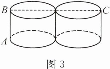 【问题解决】(3)如图3是紧密排列在一起的两个相同的圆柱,高为5cm。当蚂蚁从点A出发沿圆柱表面爬行到点C的两条路线长度相等时,求圆柱的底面半径r。