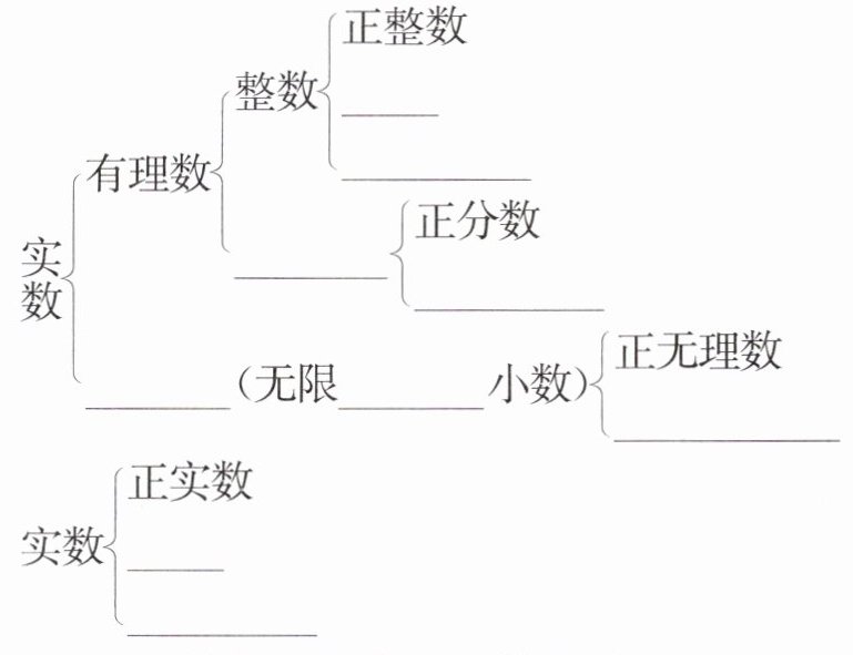 1.不循环 无限 不循环 正无理数 负无理数 2.有理数 无理数 0 负整数 分数 负分数 无理数 不循环 负无理数 0 负实数 4.一 一个实数 一一对应