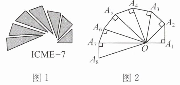 6. [2023春·龙湾区期中]图1是第七届国际数学教育大会(ICME)的会徽,主体图案是由如图2所示的一连串直角三角形演化而成,其中 $OA_1 = A_1A_2 = A_2A_3 = \cdots = A_7A_8 = a$。若 $OA_8 = 8$,则 $a$ 的值为(
