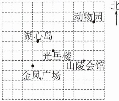 例3 如图是某市几个旅游景点的示意图(图中每个小正方形的边长都为1个单位长度)。请用两种方式表示出图中各个景点的位置。