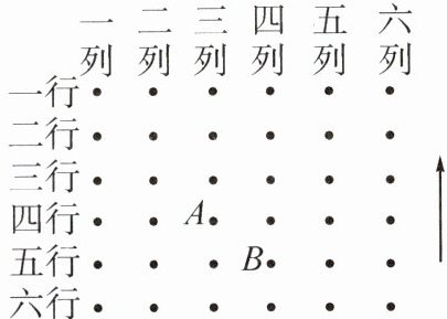 例1 如图,一方队正沿箭头所指的方向前进,A的位置为三列四行,表示为(3,4),那么B的位置表示为(