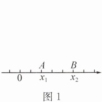 例如,如图1,数轴上点A表示的数是$x_{1}$,点B表示的数是$x_{2}$,则点A,B之间的距离为$AB = |x_{1} - x_{2}|$。