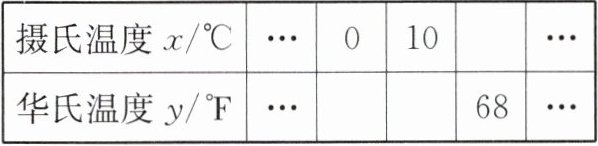 (2)小明发现华氏温度$y$与摄氏温度$x$之间成一次函数关系,试求出$y$与$x$之间的关系式。