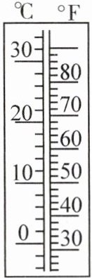 例2 [2023秋·埇桥区期末]如图是温度计的示意图,图中左边的刻度表示摄氏温度$(^{\circ}C)$,右边的刻度表示华氏温度$(^{\circ}F)$。