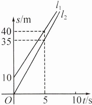 1. [2024·铁西区校级期中]小明和小亮进行百米赛跑,小明比小亮跑得快,如果两人同时起跑,小明肯定赢,现在小明让小亮先跑若干米,图中$l_{1}$,$l_{2}$分别表示两人所跑的路程与小明追赶时间的关系。
