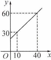 2. 随着新能源技术的日益发展与提升,新能源汽车深受广大民众的喜爱。某校数学兴趣小组为了解新能源汽车的充电情况,对某品牌新能源汽车进行了调查研究,绘制的汽车电池充电量$y$(单位:$kW\cdot h$)与充电时间$x$(单位:min)之间的关系如图所示。