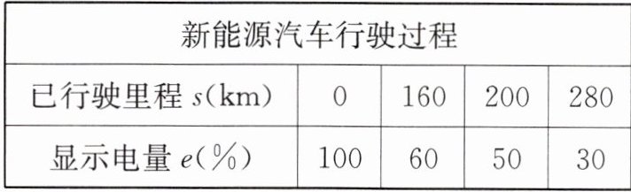 实验二:探究充满电量状态下新能源汽车行驶过程中仪表盘显示电量 $ e(\%) $ 与行驶里程 $ s(km) $ 的关系。