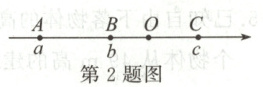 2. 如图,实数$a,b,c$在数轴上的对应点分别为A,B,C(O为原点),则$\sqrt{(a+b)^2}-|c-b|-|a+c|=$