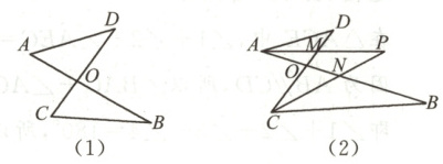 (2)①线段AB,CD相交于点O,形成“8字形”;②线段AN,CM相交于点O,形成“8字形”;③线段AB,CP相交于点N,形成“8字形”;④线段AB,CM相交于点O,形成“8字形”;⑤线段AP,CD相交于点M,形成“8字形”;⑥线段AN,CD相交于点O,形成“8字形”。