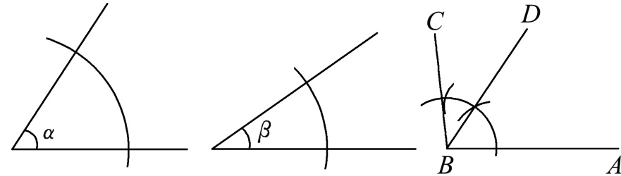 6. 如图,已知$\angle \alpha$和$\angle \beta$,用直尺和圆规作$\angle ABC$,使$\angle ABC = \angle \alpha + \angle \beta$.