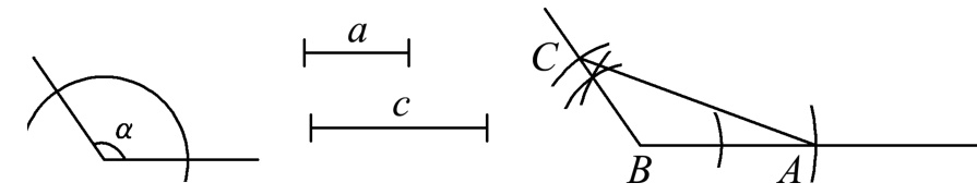 10. 如图,已知线段$a$,$c$和$\angle \alpha$,用直尺和圆规作$\triangle ABC$,使$\angle ABC = \angle \alpha$,$AB = c$,$BC = a$.