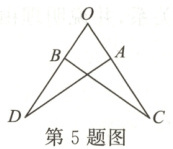 5. 如图,点$A$,$B$分别在$\angle COD$的边$OC$,$OD$上,且$OA = OB$,$OC = OD$,连接$AD$,$BC$. 若$\angle O = 65^{\circ}$,$\angle D = 30^{\circ}$,则$\angle CBD$的度数为(