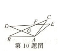 10. 如图,$\triangle ABC \cong \triangle ADE$,$\angle DAC = 80^{\circ}$,$\angle BAE = 120^{\circ}$,$BC$,$DE$相交于点$F$,则$\angle DFB$的度数是