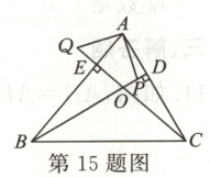 15. 如图,在$\triangle ABC$中,$BD$,$CE$是$\triangle ABC$的高,在$BD$上取一点$P$,使$BP = AC$,在$CE$的延长线上取一点$Q$,使$CQ = AB$,连接$AQ$,$AP$.