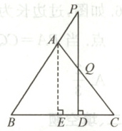 例题2 如图所示,在$\triangle ABC$中,$AB=AC$,过$BC$上一点$D$作$BC$的垂线,交$BA$的延长线于点$P$,交$AC$于点$Q$. 判断$\triangle APQ$的形状,并说明理由.