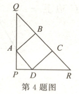 4.如图,正方形$ABCD$的边$BC$在等腰直角三角形$PQR$的斜边$QR$上,其余两个顶点$A$,$D$在$PQ$,$PR$上,则$PA:PQ$等于(
