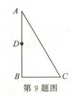 9. 如图,在$\triangle ABC$中,$\angle A = 30^{\circ}$,$\angle B = 90^{\circ}$,$D$为$AB$中点,$E$在线段$AC$上,$\frac{AD}{AB}=\frac{DE}{BC}$,则$\frac{AE}{AC}=$