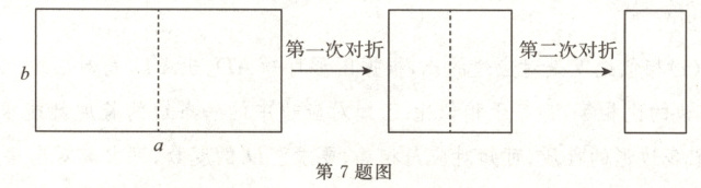 7. 如图,取一张长为 $a$,宽为 $b$ 的长方形纸片,将它对折两次后得到一张小长方形纸片. 若要使小长方形与原长方形相似,则原长方形纸片的边 $a$,$b$ 应满足的条件是