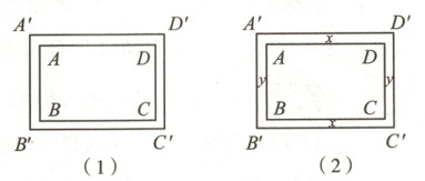 (2) 如果相对着的两条小路的宽均相等,如图(2),试问:小路的宽 $x$ 与 $y$ 的比值是多少时,能使小路四周所围成的矩形 $A'B'C'D'$ 和矩形 $ABCD$ 相似?请说明理由.