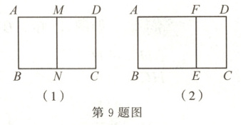 9. 一个矩形 $ABCD$ 的较短边长为 $2$.