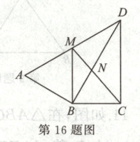 16.(10分)如图,$\angle ABD = \angle BCD = 90^{\circ}$,$DB$平分$\angle ADC$,过点$B$作$BM // CD$交$AD$于$M$.连接$CM$交$DB$于$N$.