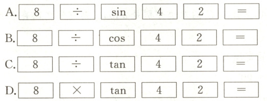 3.如图,在$\triangle ABC$中,$\angle C = 90^{\circ}$,$\angle B = 42^{\circ}$,$BC = 8$,若用科学计算器求$AC$的长,则下列按键顺序正确的是(