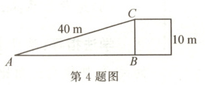 4.为了方便行人推车过某天桥,市政府在$10 m$高的天桥一侧修建了$40 m$长的斜道(如图所示).我们可以借助科学计算器求这条斜道倾斜角的度数,具体按键顺序是(