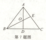 7.如图,在$\bigtriangleup ABC$中,点$O$是角平分线$AD$,$BE$的交点.若$AB = AC = 10$,$BC = 12$,则$\tan \angle OBD$的值是(