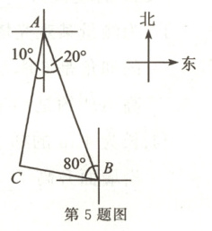5.一渔船在海岛$A$南偏东$20^{\circ}$方向的$B$处遇险,测得海岛$A$与$B$的距离为$20$海里,渔船将险情报告给位于$A$处的救援船后,沿北偏西$80^{\circ}$方向向海岛$C$靠近.同时,从$A$处出发的救援船沿南偏西$10^{\circ}$方向匀速航行.$20$分钟后,救援船在海岛$C$处恰好追上渔船,那么救援船航行的速度为(