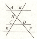 例题1 如图,已知$AB // CD // EF$,$AF$交$BE$于点$H$,下列结论中错误的是().