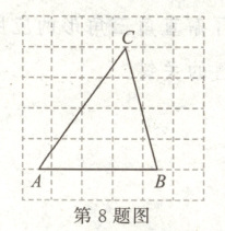 8. 如图,在 $6 × 6$ 正方形网格中,$\triangle ABC$ 的顶点 $A$,$B$,$C$ 都在网格线上,且都是小正方形边的中点,则 $\sin A =$