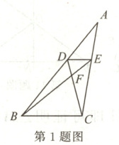 1. 如图,点$D$为$\triangle ABC$边$AB$上任一点,$DE // BC$交$AC$于点$E$,连接$BE$,$CD$相交于点$F$,则下列等式中不成立的是(