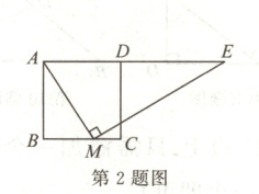 2. 如图,在正方形$ABCD$中,$M$为$BC$上一点,$ME \perp AM$,$ME$交$AD$的延长线于点$E$.若$AB = 8$,$BM = 6$,则$DE$的长为(