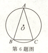 6. 如图所示,在$\odot O$中,$\overset{\frown}{AB} = \overset{\frown}{AC}$,$\angle A = 30°$,则$\angle B =$(