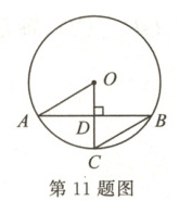 11. 如图,$A$,$B$,$C$是$\odot O$上的点,$OC \perp AB$,垂足为点$D$,且$D$为$OC$的中点. 若$OA = 7$,则$BC$的长为
