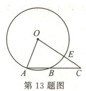 13. 如图,$E$是$\odot O$上一点,$AB$是$\odot O$的弦,$OE$的延长线交$AB$的延长线于$C$. 如果$BC = OE$,$\angle C = 40°$,则$\angle EOA =$