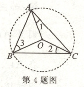 4.如图,$O$是$\triangle ABC$的外心,则$\angle1+\angle2+\angle3=$(