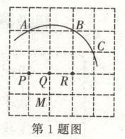 1.如图,在$5×5$正方形网格中,一条圆弧经过$A$,$B$,$C$三点,那么这条圆弧所在圆的圆心是(