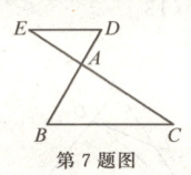 7. 如图,在$\triangle ABC$中,$D$,$E$分别是边$BA$,$CA$延长线上的点,且$DE // BC$.如果$\frac{DE}{BC} = \frac{3}{5}$,$CE = 4$,那么$AE$的长为