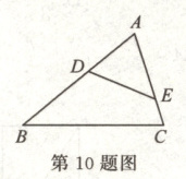 10. 如图,点$D$,$E$分别在$\triangle ABC$的$AB$,$AC$边上.只需添加一个条件即可证明$\triangle AED \backsim \triangle ACB$,这个条件可以是