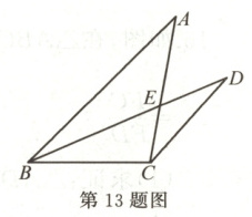 13. 如图,在$\triangle ABC$中,$AB = 8$,$BC = 4$,$CA = 6$,$CD // AB$,$BD$是$\angle ABC$的平分线,$BD$交$AC$于点$E$.