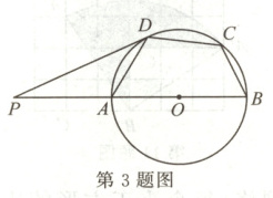 3.如图,在$\odot O$的内接四边形$ABCD$中,$AB$是直径,$\angle BCD = 130^{\circ}$,过$D$点的切线$PD$与直线$AB$交于$P$点,则$\angle ADP$的度数为(